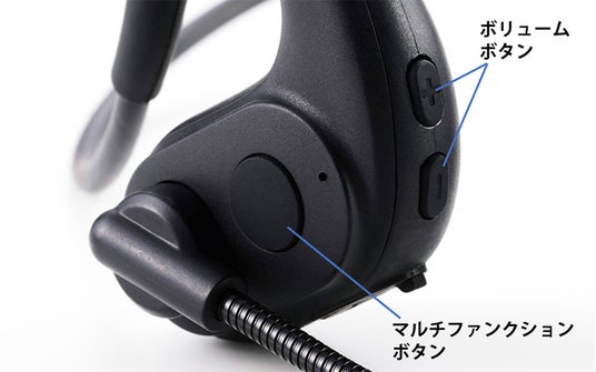 約31gと軽量で頭部への締め付けを抑えるネックバンド方式と、周囲の音を自然に聞き取れる空気伝導タイプのオープンイヤー型を採用したBluetooth(R)ヘッドセットです。ワイヤレス接続のため、ちょっとした離席時も通話が可能です。