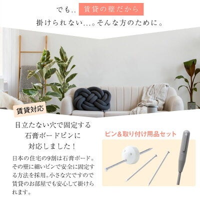 取り付けはとても簡単。石膏壁専用のパーツを細いピンで固定するだけで、工具が苦手な方や女性でもスムーズに設置できます。専用工具「ピンプッシャー」も付属しているため、指を傷める心配もありません。