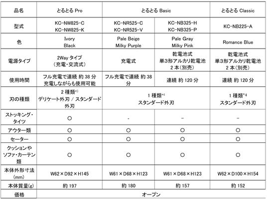*3 KC-NW825:お買い上げ時は、あらかじめ本体にデリケート外刃が装着されています