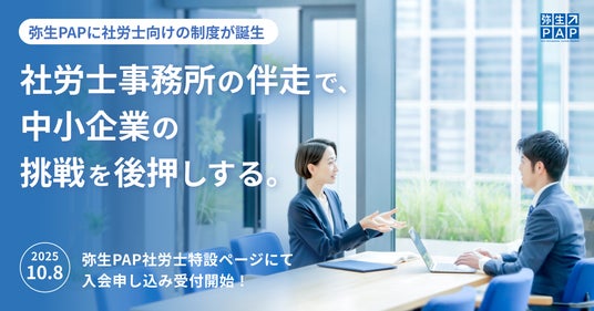弥生株式会社(本社:東京都千代田区、代表取締役 社長執行役員 兼 CEO:武藤健一郎、以下「弥生」)は、会計事務所向けパートナープログラム「弥生PAP」に、社会保険労務士(以下、社労士)向けの新たな入会区分「弥生PAP社労士」を新設しました。あわせて、初年度年会費が無料となるキャンペーンを実施いたします。