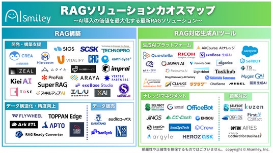 アイスマイリ―、RAGソリューションカオスマップを公開!ーAI導入の価値を最大化する最新RAGソリューション 84製品を紹介ー