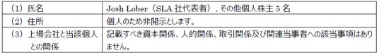 上記7.日程 のとおり、2026年3月末までに、Josh Lober(SLA社代表者)、その他個人株主5名からSLA社の全株式を取得する予定です。なお、本件にともなう今期の連結業績への影響は軽微です。