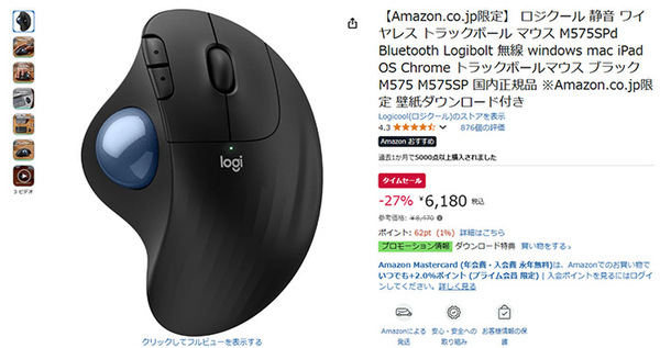 人気のトラックボールマウス「ロジクール 静音 ワイヤレス トラックボール マウス M575SPd」が、プライム感謝祭セールでお得に購入できます。