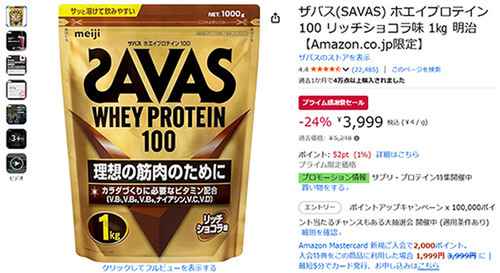 ザバス(SAVAS)から、サッと溶けて飲みやすい「ホエイプロテイン100 リッチショコラ味 1㎏」がAmazonプライム感謝祭セールに登場。