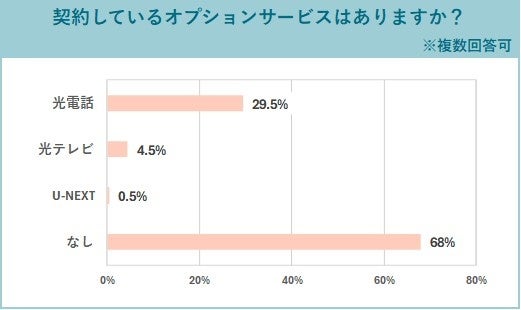 オプションサービスを契約している人は全体の34.5%で、そのうち「光電話」を契約している人が最も多く、29.5%を占めました。