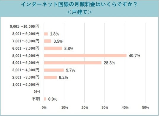 戸建てに住んでいる人のインターネットの月額料金は「5,001~6,000円」(40.7%)が最も多く、次いで「4,001~5,000円」(28.3%)となりました。