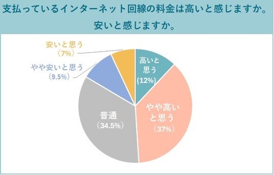 インターネット回線に支払っている料金については、「高い」「やや高い」と回答した人が49%にのぼり、約半数が現在の料金を高いと感じていることが明らかになりました。