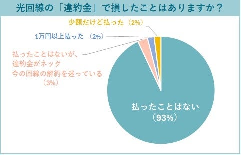 光回線の違約金については、「払ったことがない」と回答している人が93%にのぼり、全体のほとんどを占めました。