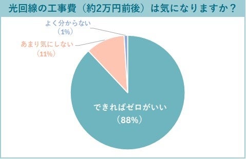 ・光回線の工事費:約9割が「できればゼロがいい」と回答。
