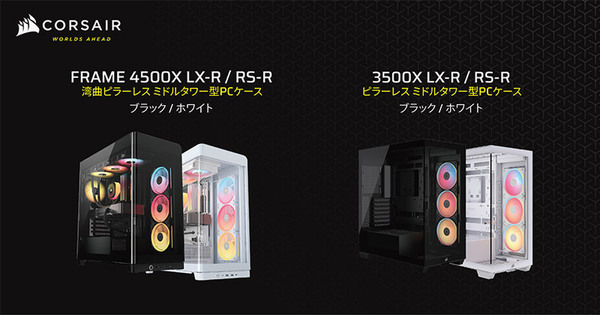アスクは、CORSAIR製の新型ミドルタワーPCケース「FRAME 4500X」シリーズと、リバースファンを標準搭載した「3500X」シリーズを発表した。どちらのシリーズも“ピラーレスデザイン”を採用し、PCビルドの美しさを最大限に引き出せる構造が特徴だ。