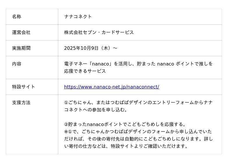 セブン・カードサービス社の新しい推し活サービス「ナナコネクト」と「こどもごちめし」が提携を開始