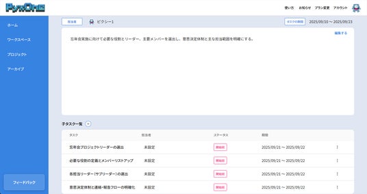 正式版では、ガントチャートの高度な自動化機能やAIによるレポート生成サポートを搭載予定です。目指すのは、プレイングマネージャーの負担を減らすだけではありません。メンバー一人ひとりが自律的にタスクを理解し、推進できる力を身につけることで、全員が“プレイングマネージャー”のように動ける組織を実現します。