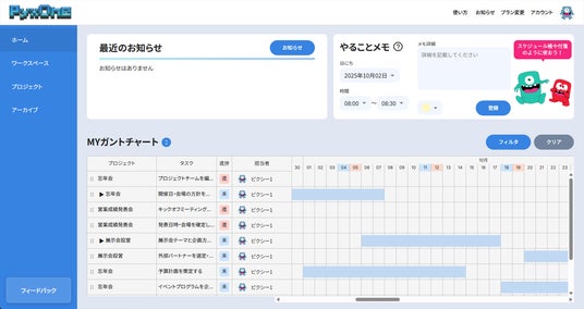 PyxOneチーム(代表:小栗佳祐)は、本日2025年10月9日(木)より、プレイングマネージャーの兼務負担を軽減するガントチャートをベースにしたプロジェクト推進ツール『PyxOne』β版の提供を開始いたしました。