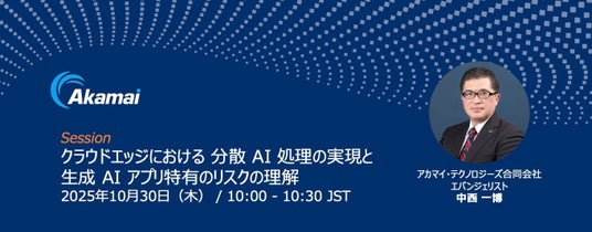 アカマイ・テクノロジーズ合同会社(本社:東京都中央区、職務執行者社長:日隈寛和、以下「Akamai」)は、2025年10月28日(火)から10月30日(木)までパシフィコ横浜ノースで開催される、「Gartner IT Symposium/Xpo(TM) 2025」にプラチナ出展社の1社として出展することをお知らせいたします。