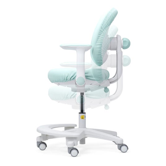 お子さまの姿勢を考え抜いたサポート構造。背もたれの形状と座面の高さを調整でき、成長段階に合わせて自然に正しい姿勢を保てます。学習時の集中力を高め、長時間でも疲れにくい理想の学習環境を実現します。