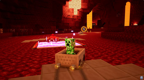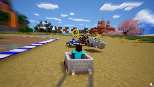 DLCでは「マインクラフト」を再現したコースや、マシンとしてトロッコ(マインカート)が登場。「スティーブ」「アレックス」「クリーパー」がレーサーとして参加。