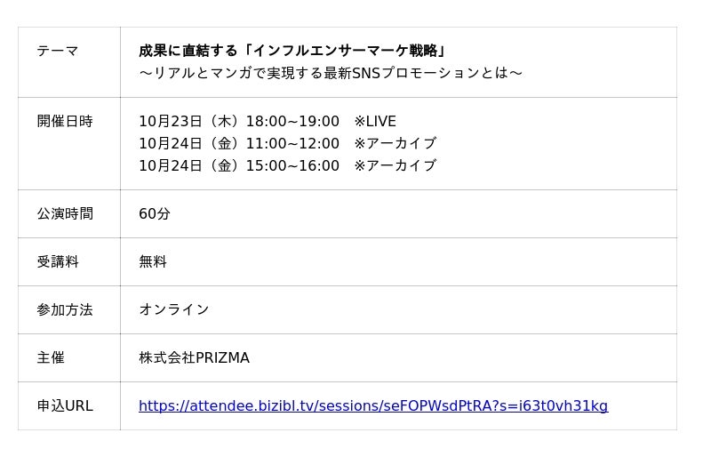 【10月23日(木)~2日間無料開催】成果に直結するインフルエンサーマーケ戦略 ~リアルとマンガで実現する最新SNSプロモーションとは~