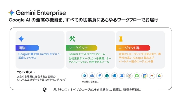 Google Cloudは、2025年10月9日(米国時間)に開催した「Gemini at Work」にて、新たなAIエージェントの活用・構築基盤である「Gemini Enterprise」を提供開始することを発表した。