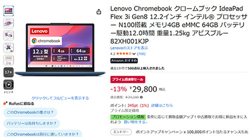 【プライム感謝祭セール】Lenovo Chromebook IdeaPad Flex 3iが登場!