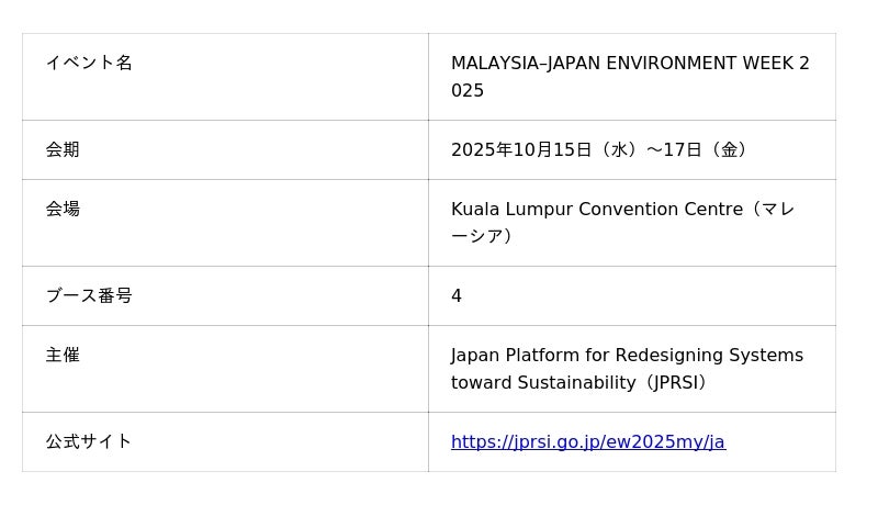 本イベントは、環境省およびマレーシア天然資源・環境・気候変動省の連携のもと、両国の脱炭素化・循環経済・気候適応をテーマに開催される国際的な環境展示会・会議です。
