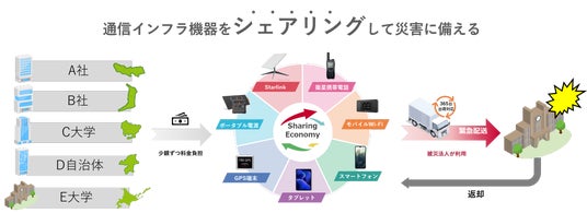 スターリンクや衛星電話などの機器や蓄電池といった災害用高額機器を購入するのではなく、全国のご契約者様の中で、シェアリングすることで、安価に災害に備えることが出来るサービスです。