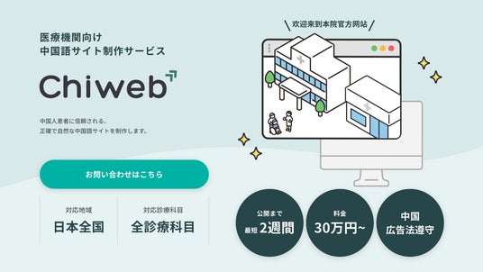 多様な患者ニーズに応える医療機関づくりを支援する株式会社メディハオは、医療機関に特化した中国語サイト制作サービス「Chiweb(チャイウェブ)」の提供を開始いたしました。