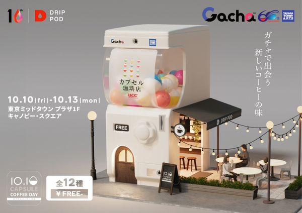UCC上島珈琲株式会社は10月10日から10月13日までの期間限定で「UCCカプセル珈琲店」を東京ミッドタウンにオープンする。価格は無料。カプセル式ドリップコーヒーシステム「ドリップポッド」10周年企画の一環としての開催だ。
