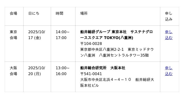 開催日時:東京会場 2025年10月17日 (金)14:00~17:00/大阪会場 2025年10月20日 (月)13:00~16:00