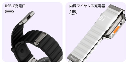 バンドにワイヤレス充電モジュールを内蔵し、USB-Cポート経由でApple Watchをスマートに充電できるよう設計されています。