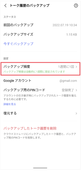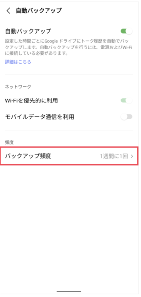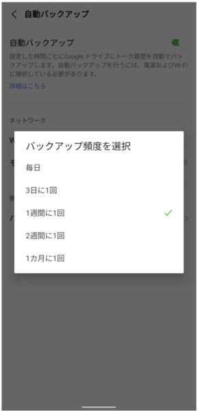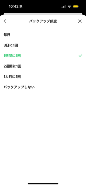 次に [バックアップ頻度] をタップし、[毎日/3日に1回/1週間に1回/2週間に1回/1ヵ月に1回] から1つ選択すればOKだ。