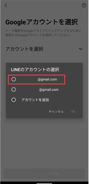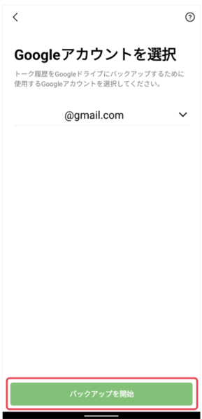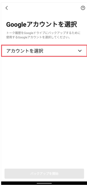 ホームから設定画面を開き、[トークのバックアップ・復元] からバックアップを一度実行しておく。続いて、Googleアカウントを選択しよう。