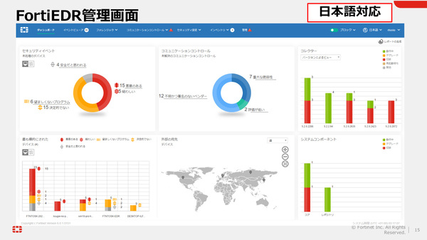 フォーティネットの「FortiEDR」は、その要件を満たしたEDRである。対応するOSは、Windows XP/7/8/8.1/10/11、Windows Server 2003/2003 R2/2008/2008 R2/2012/2012 R2/2016/2019/2022/2025と、かなり古いOSも含まれる(ほかにmacOS、Linux、VDIの仮想マシンにも対応している)。