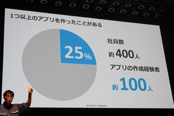 こうして、業務理解のあるユーザーがアプリを開発し、情シスがノウハウの共有をサポートするという両輪で、業務改善を回す体制を確立した。この効果は絶大で、従業員約400名のうち4分の1がアプリ作成経験者となり、約5年間で700個ものアプリが作られたという。