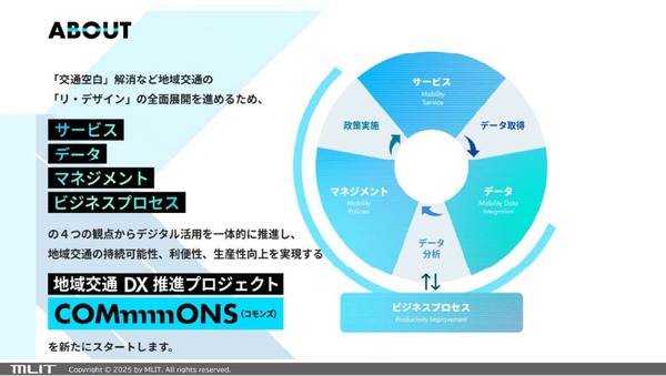 まずは、2025年4月に始動した地域交通DXプロジェクト「COMmmmONS(コモンズ)」について説明がなされた。