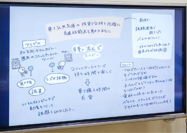 チームは、マイカーにはない公共交通の魅力のひとつを「誰かと移動を共有できること」と捉え、そのうえで、待ち時間を気軽なコミュニケーションによって楽しく過ごせるようにする仕組みを考案した。