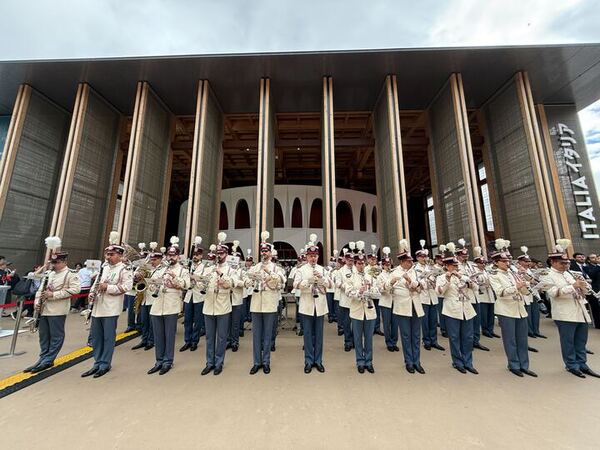 また、式典終了後にはパビリオン前に設置された特設スケートリンクのこけら落としを開催。イタリア陸軍軍楽隊の生演奏に合わせ、関西大学所属のスケーターたちが演技を披露した。