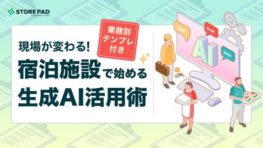 AI搭載型の店舗・施設情報発信・分析プラットフォーム「STOREPAD(ストアパッド)」を提供するイクシアス株式会社(本社:東京都中央区、代表取締役社長 CEO:内藤 崇司)は、このたび、宿泊事業者の皆様向けに『現場が変わる!宿泊施設で始める生成AI活用術(業務別テンプレ付き)』を無料で公開いたしました。