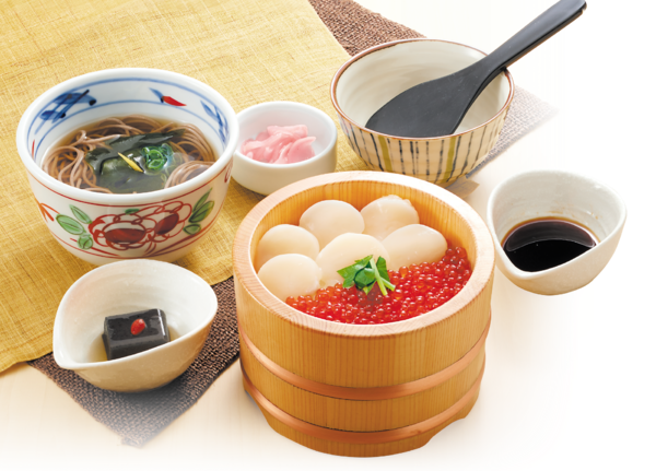 単品メニューでは、帆立といくらを贅沢に盛り合わせた「帆立といくらの二色丼セット」や、いくら丼・帆立丼・豚丼から好きな2種類を選べる「選べる北海ミニ丼セット」、北海道産食材を少しずつ楽しめる「北海づくし御膳」などが登場します。