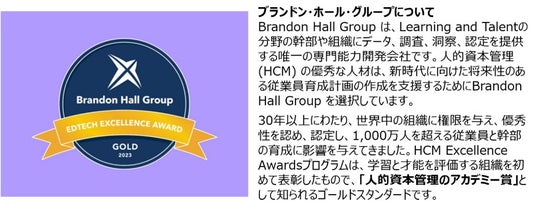 - 「人的資本管理のアカデミー賞」と言われるBrandon Hall Group の Excellence in Technology Awardで金賞を受賞するなど世界的に高い評価を得ている