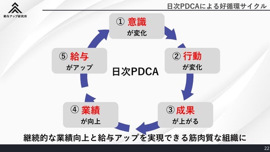 このプロセスは、給与アップ研究所が提唱する「日次PDCAサイクル」に基づいており、