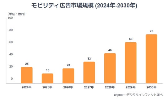 これらを背景に、2030年のモビリティ広告市場は2025年比で約5倍となる75億円規模に達する見込みです。