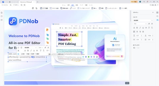 「Tenorshare PDNob」は、シンプルな操作性と高度な編集機能を兼ね備えたオールインワン型PDF編集ソフトです。