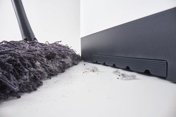 ケースに戻す際に電源を入れてモップを上下に動かすだけで、収納部の内側についているギザギザのゴムブラシがモップに付着したホコリをかき取って吸引し、キレイな状態になります。