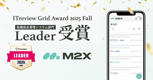 株式会社M2X(本社:東京都中央区、代表取締役社長:岡部晋太郎)が提供する現場にとけ込む設備保全アプリ「M2X」が、IT製品レビュープラットフォーム「ITreview」で発表された「ITreview Grid Award 2025 Fall」の設備保全管理システム部門において、最高位である「Leader」を受賞したことをお知らせします。顧客満足度と認知度の双方が優れた製品として評価されたことがこの度の受賞に繋がりました。