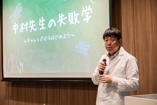挑戦と失敗の先に成長があることを伝えるため、当社ソフトウェアエンジニアリング事業部の事業部長の中村による「失敗学講座」を行いました。中村は「挑戦することで失敗も含めて成長していく」と冒頭で話すと、自身の人生の失敗談をクイズ形式にして学生に出題しました。日常生活の失敗から仕事の失敗まで幅広く自身の失敗談を話すと、学生からは「人生の先輩がたくさん失敗しているのを見て、安心した。失敗がネガティブなものではないと思えることができた」と話していました。