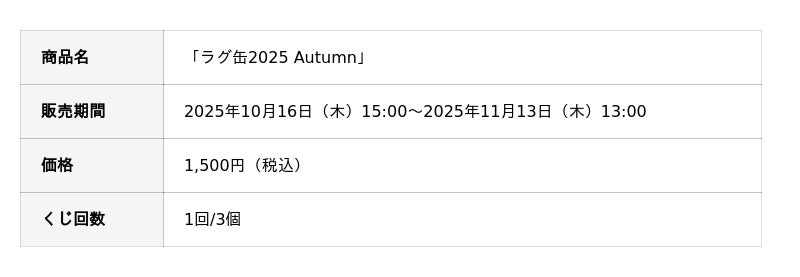 2025年10月16日(木)15:00より、「ラグ缶2025 Autumn」の販売を開始いたします!