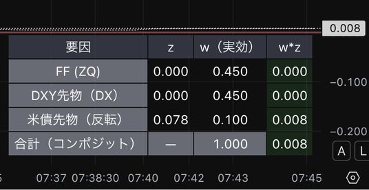 これらを統合し、それぞれにウェイトを設定したものがUJ5であるが、実質金利・FF先物は更新が遅い。