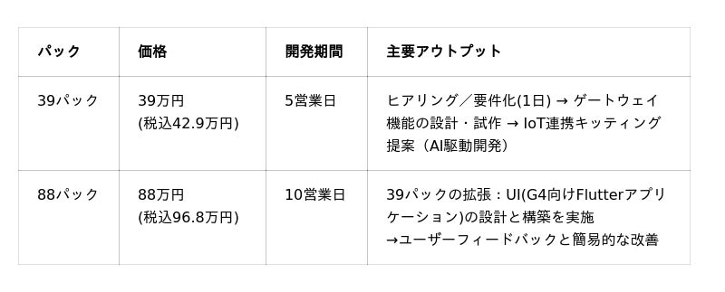 株式会社MAGLAB(本社:高知県、代表取締役:武市 真拓、以下「MAGLAB」)と 株式会社アットマークテクノ(本社:札幌市、代表取締役社長:實吉 智裕、以下「アットマークテクノ」)は、生成AIを活用したAI駆動開発と、Armadillo-IoT(アルマジロ・アイオーティー)を組み合わせ、現場で“触れて試せる”プロトタイプを短期間・リーズナブルに立ち上げる共同サービス「39/88パック」を開始します。