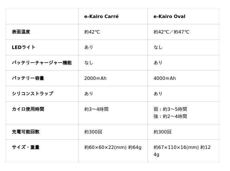 繰り返し使える充電式カイロ、イーカイロシリーズから「e-Kairo Carre(イーカイロ カレ)」と「e-Kairo Oval (イーカイロ オーバル)」の2種類を2025年新デザインで発売します。