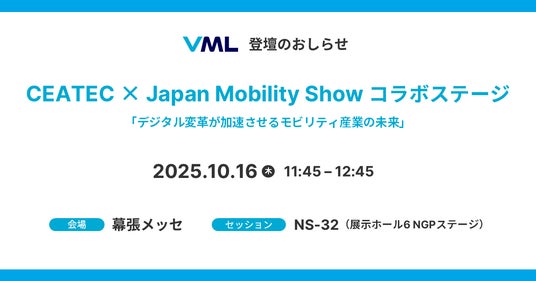自動運転・制御系エンジニア育成事業を展開するVirtual Motorsport Lab Inc.(本社:大阪府大阪市北区、代表取締役 山下洋樹、以下 VML)は、2025年10月16日(水)に開催されるCEATEC × Japan Mobility Show コラボステージ「デジタル変革が加速させるモビリティ産業の未来」に、代表の山下洋樹が登壇することをお知らせいたします。